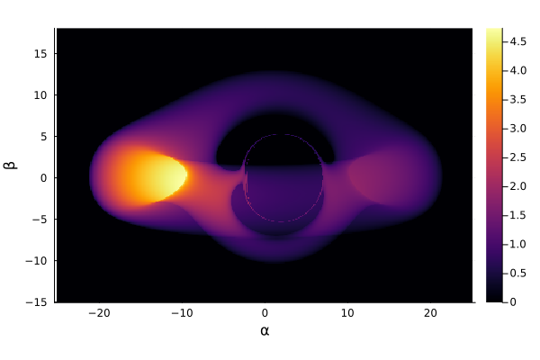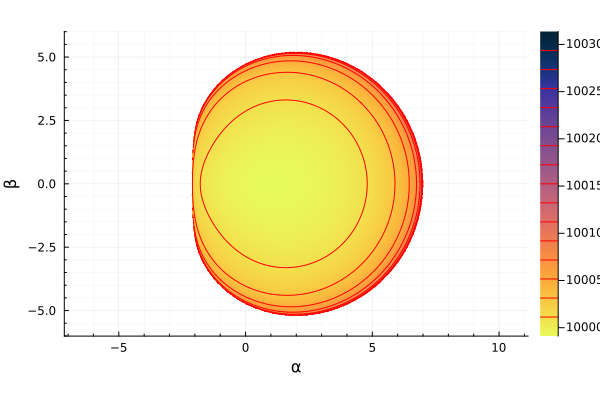 α, β = impact_parameters_for_radius(m, x, d, r, N=100)